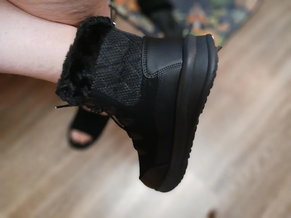 The sole is made up of a very lightweight but super sturdy MD+Rubber. They are extremely lightweight with a nice bounce and cushion to them. They are impact resistant, weather resistant and are super anti slip. The faux fur adds to the cushion and softness of the sole and gives comfort all around for excellent all day wear. The entire boot has padding all around and the quilted sides add extra warmth and comfort.