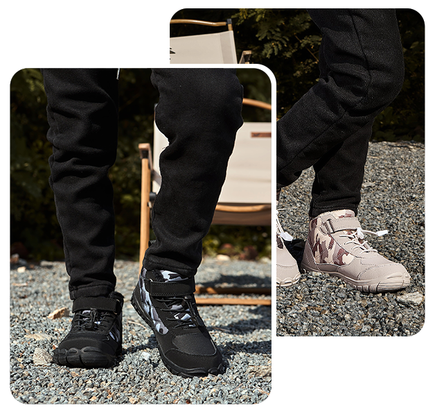 Botas de invierno acogedoras para niños: diseño descalzo y suela antideslizante