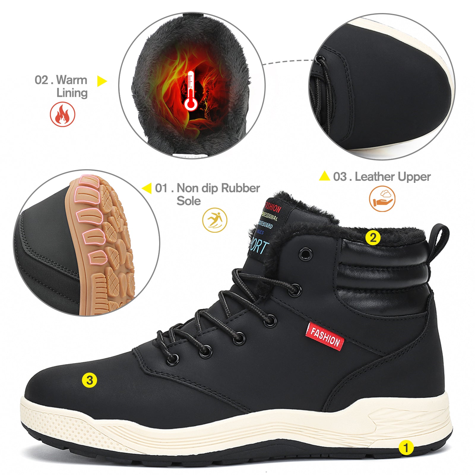 Parte superior de cuero de primera calidad: el cuero PU repele la nieve y el agua, manteniendo los pies secos todo el día.