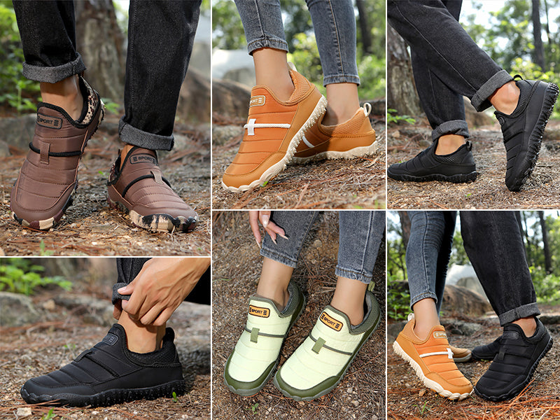 These slip-on winter sneakers combine warmth, wide-toe comfort, and all-terrain traction in a single versatile shoe. Whether you’re commuting in the city, exploring icy streets, hiking short trails, or enjoying outdoor winter activities, these sneakers provide secure footing, plush warmth, and natural barefoot freedom. The wide toe box accommodates more foot types, while the water-resistant upper keeps feet dry even in snow or slush. Lightweight yet protective, these shoes are your reliable companion for confident winter adventures.